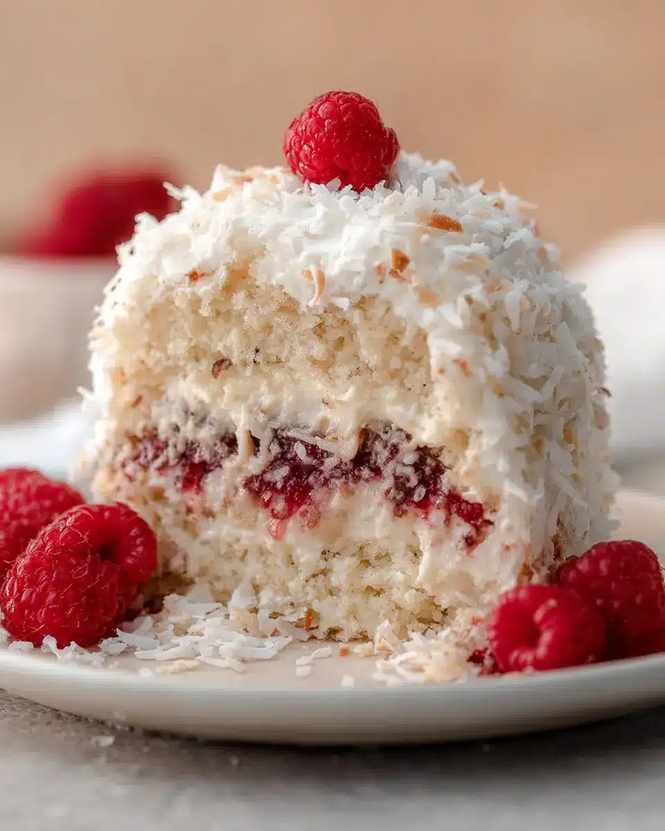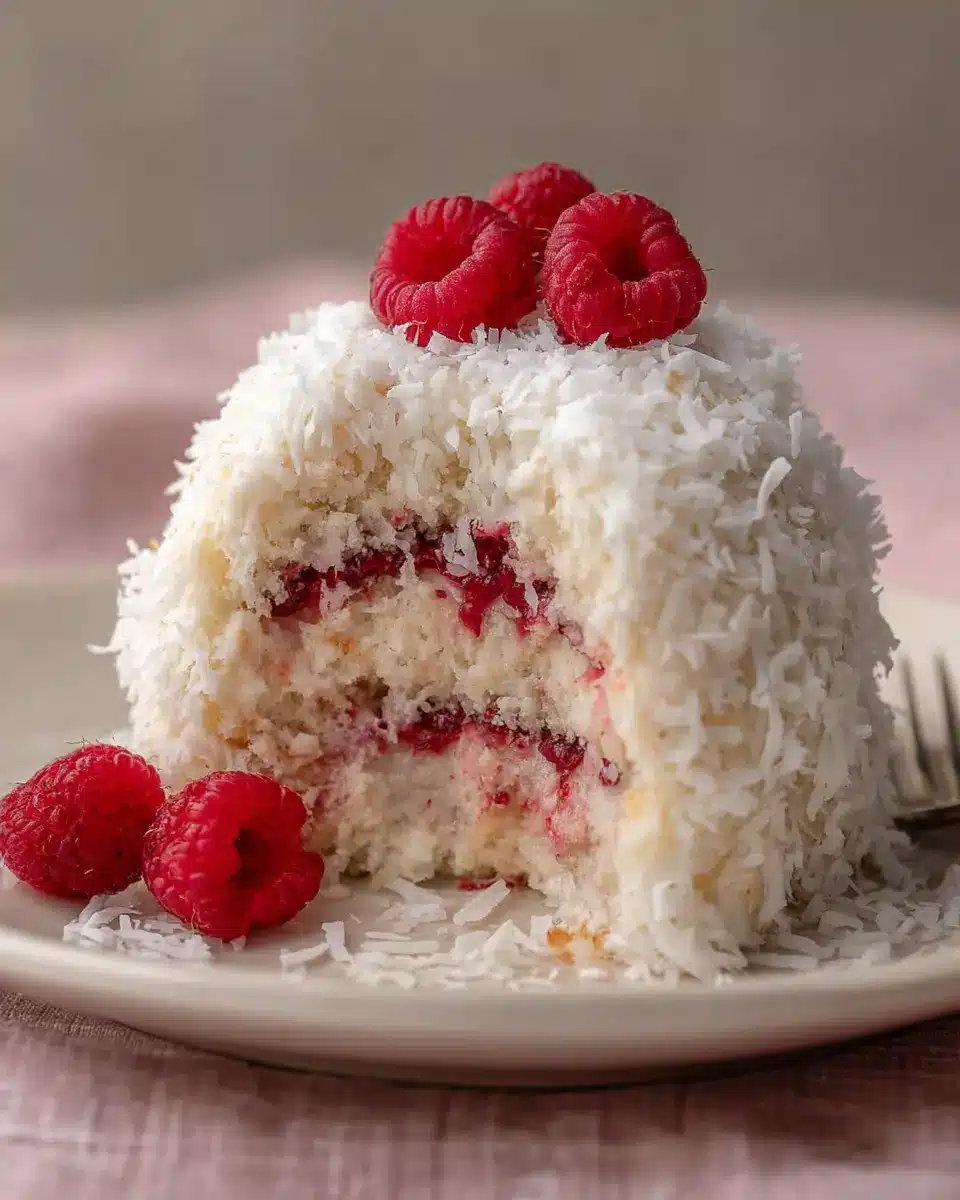 What truly makes this cake a showstopper? It’s all about the unexpected combination of flavors and textures. The tartness of fresh raspberries against the rich, creamy coconut creates a harmonious balance that tantalizes the taste buds. Plus, the light, fluffy cake contrasts beautifully with the smooth frosting and crunchy coconut flakes. Decorate it with some edible flowers or fresh berries, and you have a dessert that could easily star in any celebration.