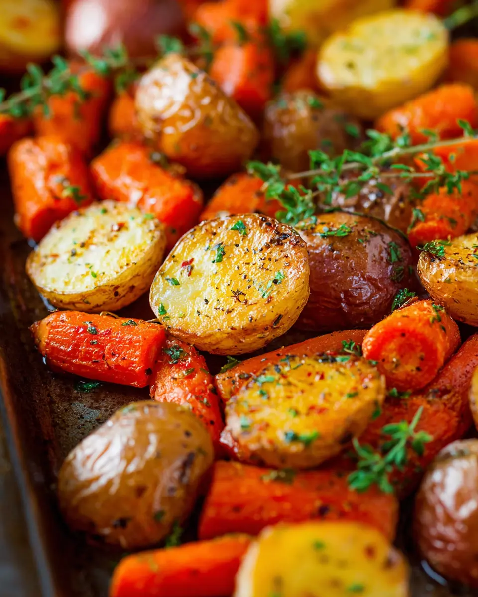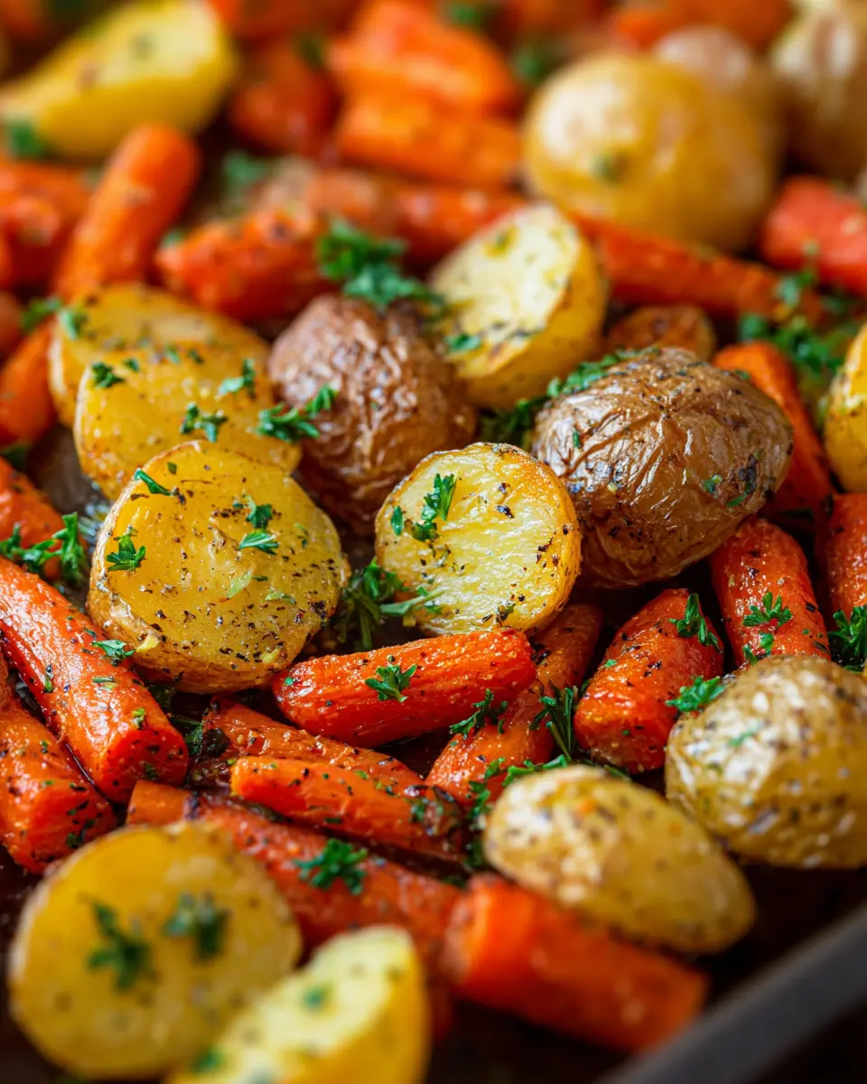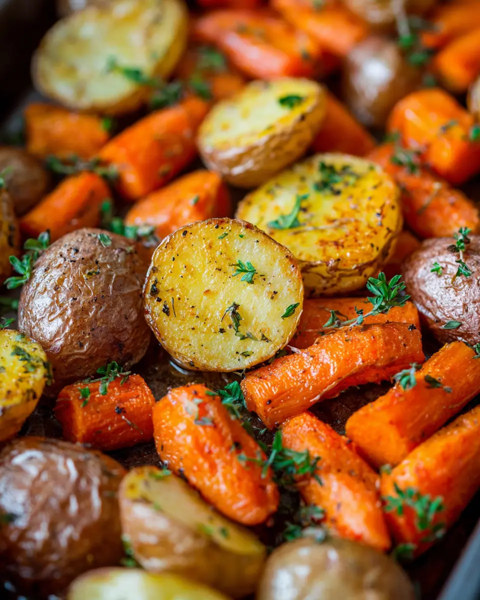 Imagine pairing these hearty roasted potatoes and carrots with grilled chicken or beef for a satisfying meal. It's a straightforward yet elegant way to impress your guests or simply enjoy a comforting dinner with loved ones.