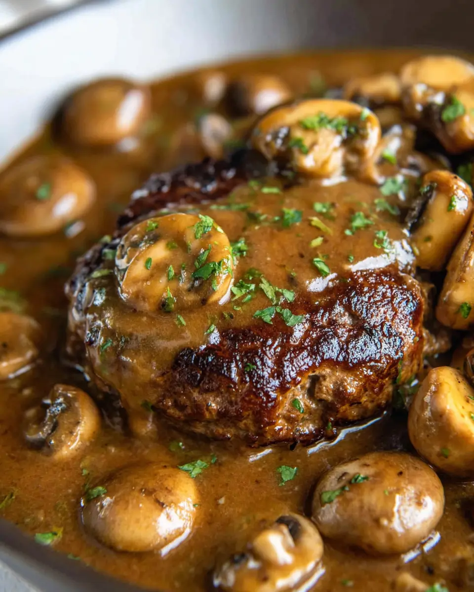 Transform your classic Salisbury steak with mushroom gravy by creating delicious meatballs! Simply mix your Salisbury steak mixture, form it into small balls, and simmer them in the savory mushroom gravy. They cook faster and are perfect for meals on the go or as a fun appetizer. Plus, kids love them! Serve with toothpicks or over a bed of creamy mashed potatoes to elevate your dinner experience.