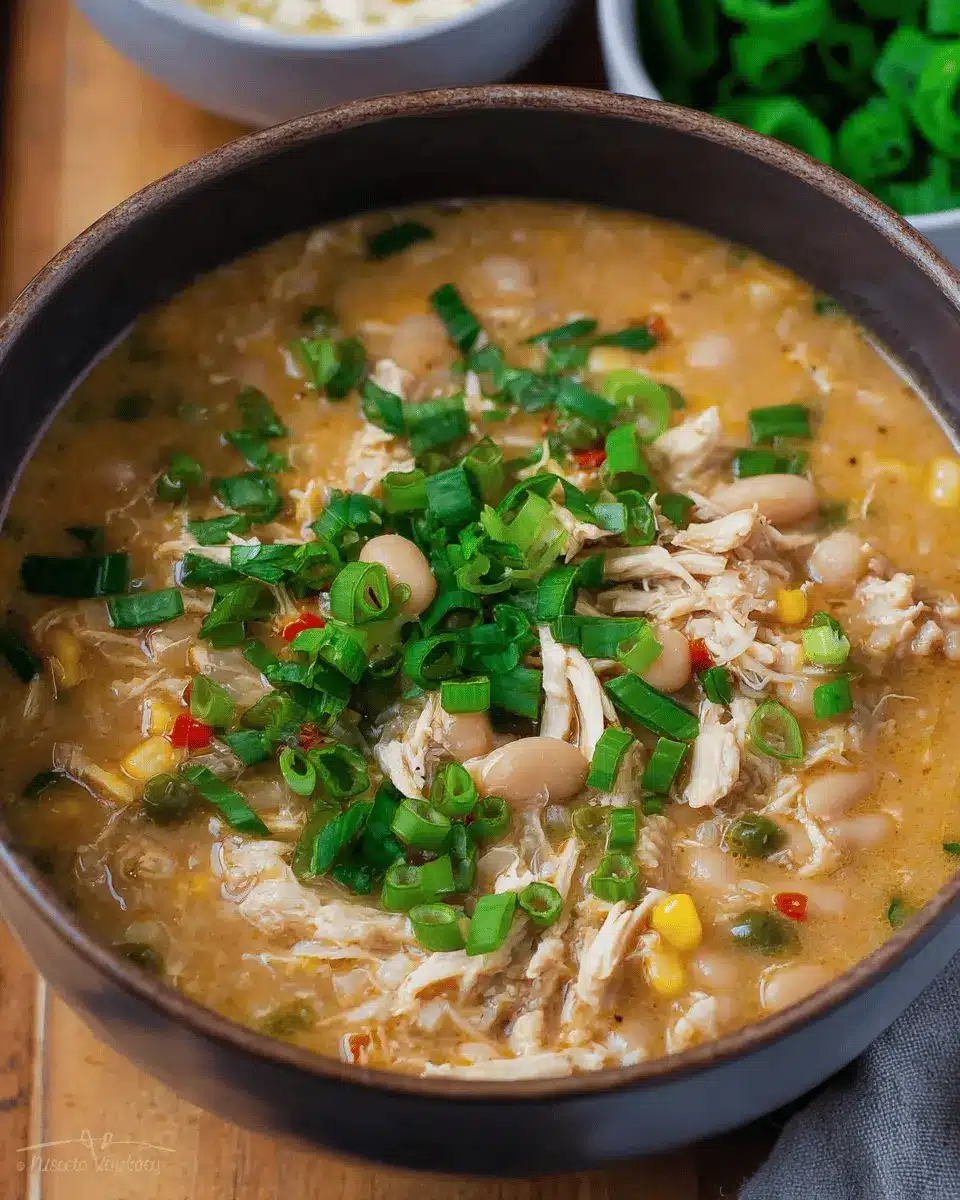 Now you’re ready to serve your Southwestern White Chicken Chili with accompaniments like green onions, sour cream, and tortilla chips. Enjoy your culinary masterpiece!