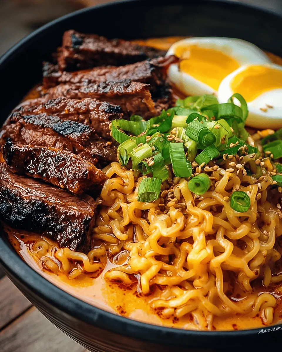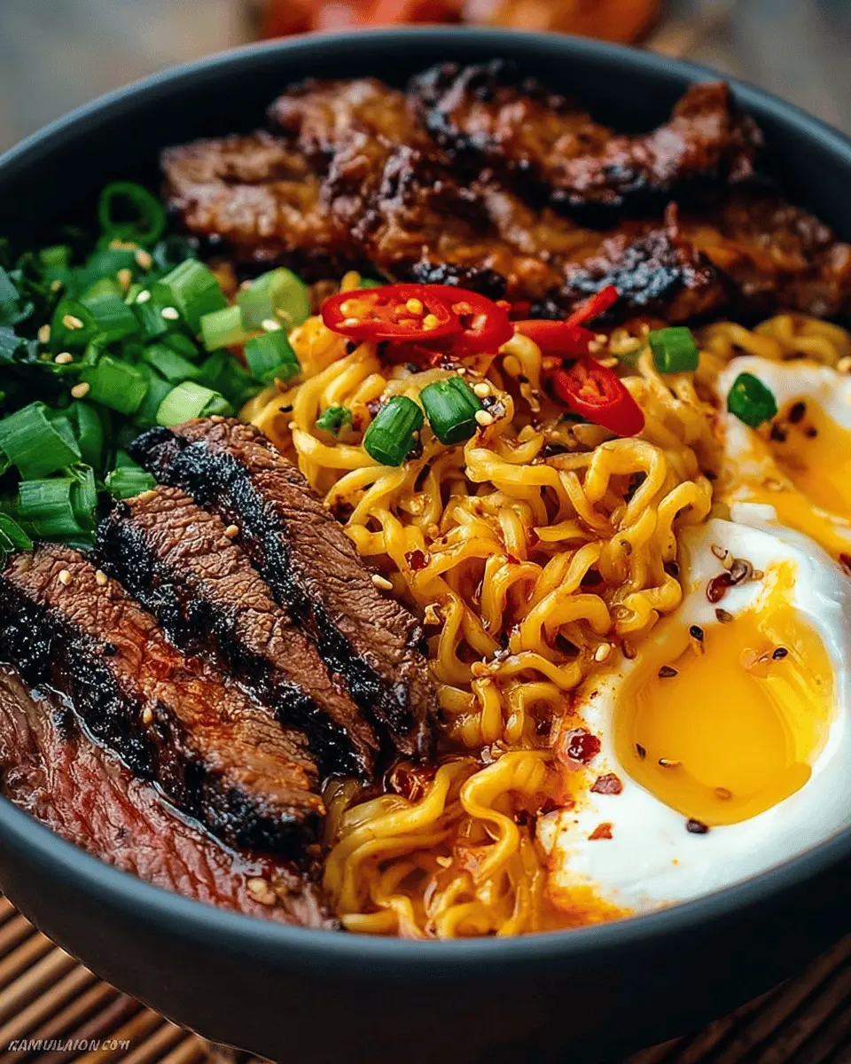 In summary, this Spicy Korean Ramen with Grilled Beef & Creamy Sauce is a sumptuous dish that satisfies both cravings and hunger. With rich flavors, cozy ingredients, and a hint of heat, it's ideal for weeknight dinners or special occasions. Try it, and you’ll discover a new favorite!