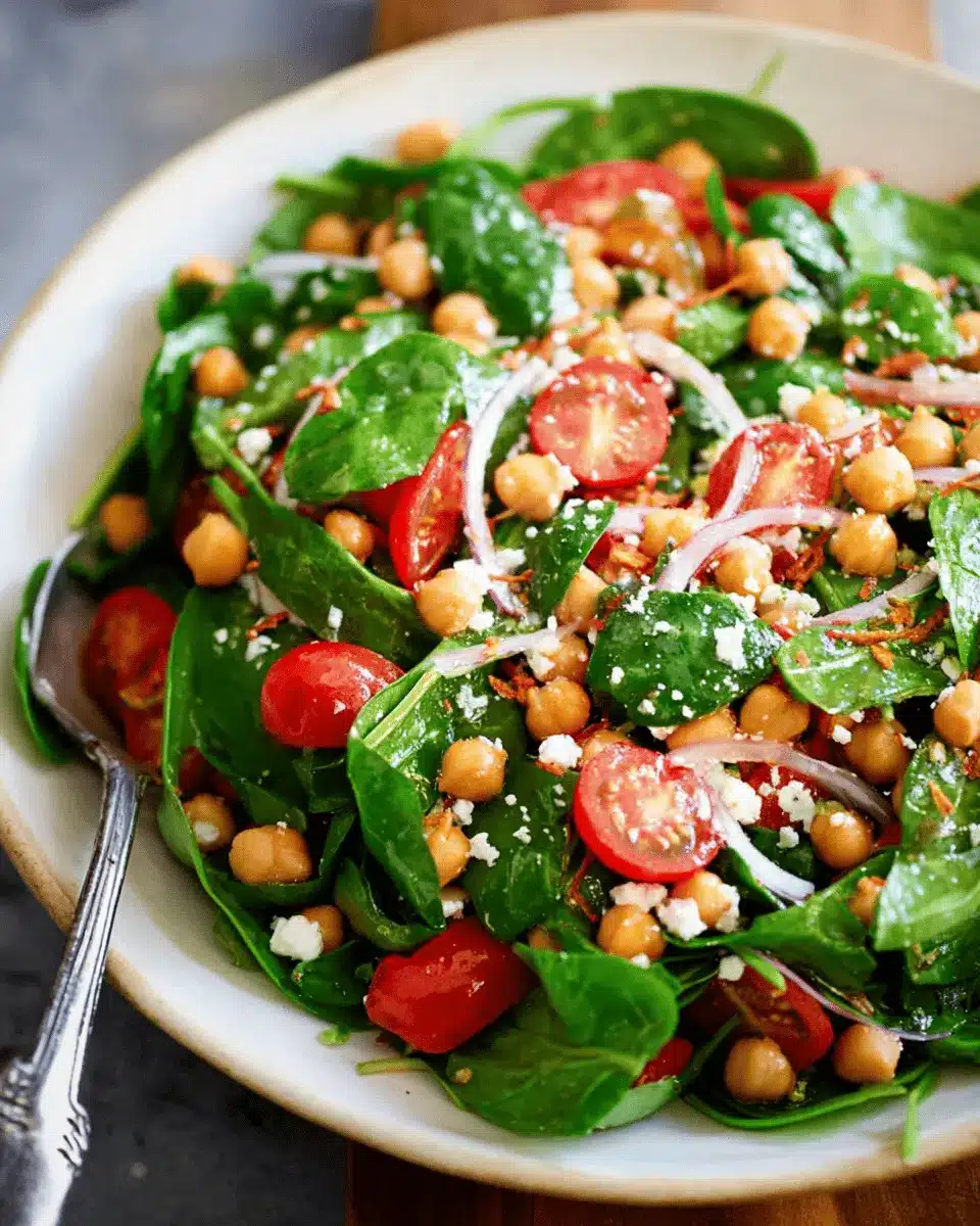 The spinach chickpea salad recipe is an exceptional balance of nutrition and flavor, perfect for anyone looking to maintain a healthy lifestyle. Spinach, rich in vitamins K and A, provides a robust source of antioxidants, while chickpeas add a hearty dose of protein and fiber. Together, they create a dynamic duo that not only satisfies your hunger but also supports overall wellness. Whether you’re a health enthusiast or just starting your journey, this salad is an easy way to enjoy wholesome ingredients without sacrificing taste.