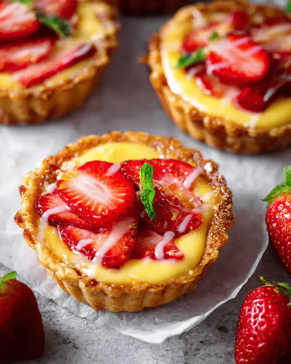 In conclusion, strawberry honey custard tarts are a delightful way to celebrate the flavors of spring and summer. Their creamy filling, combined with the sweetness of strawberries and the tangy lemon curd, creates an irresistible treat. Perfect for gatherings or a cozy night in, these tarts are sure to impress any guest!