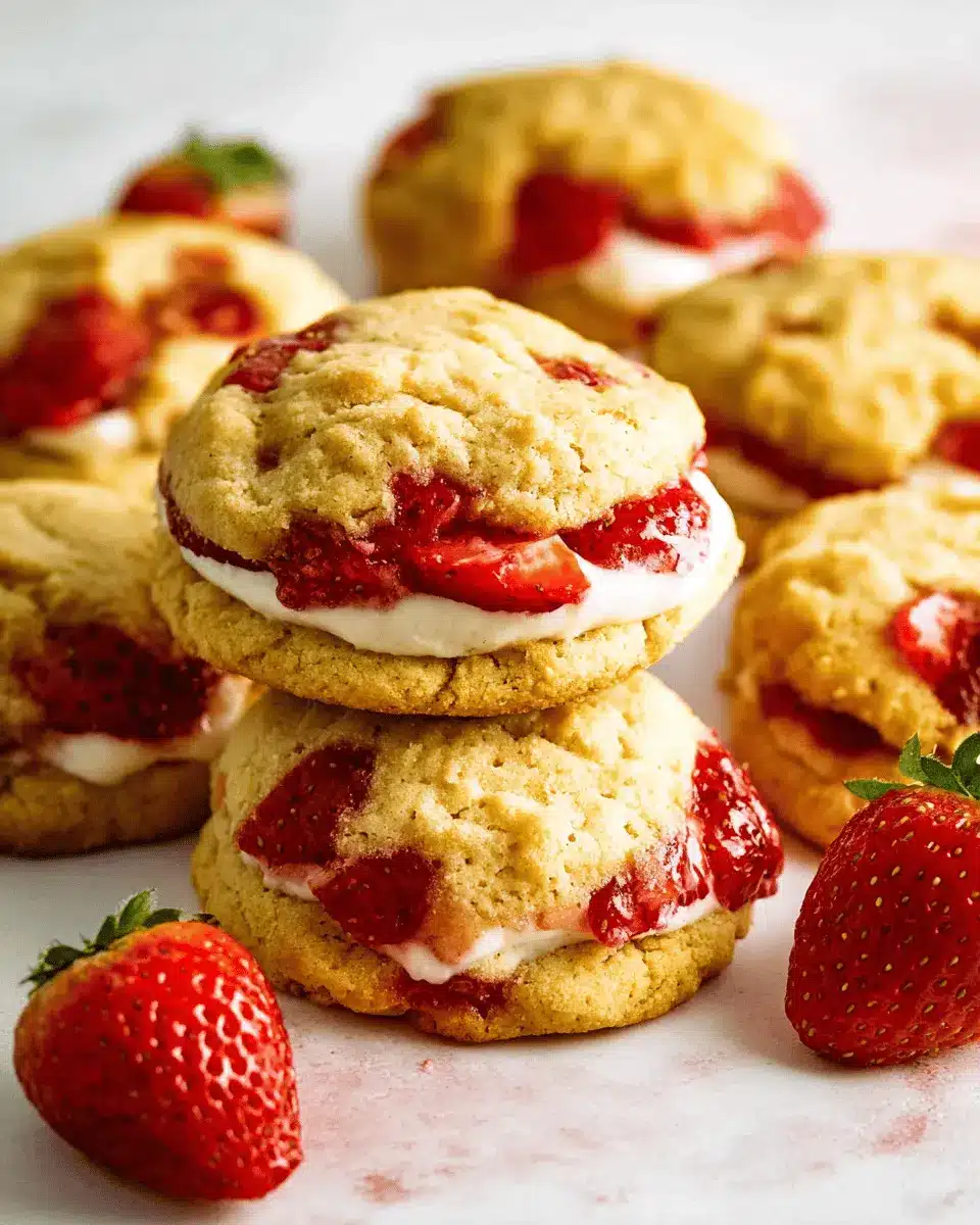 To keep your Strawberry Shortcake Cookies fresh, store them in an airtight container at room temperature for up to a week. If you want to keep them longer, consider freezing them. Just make sure they are well-wrapped to prevent freezer burn. When ready to enjoy, thaw at room temperature or warm them slightly in the oven for that fresh-baked taste.