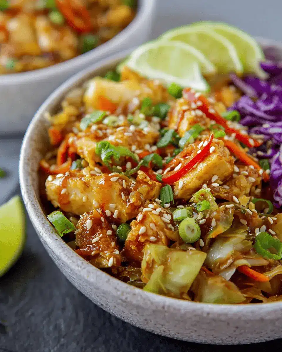 While Thai-Inspired Chicken and Cabbage Bowls are delightful with chicken, don’t hesitate to mix it up! Consider incorporating proteins like shrimp, tofu, or even turkey bacon for a twist. These alternatives not only cater to various dietary preferences but also offer different flavor profiles. Grilled shrimp adds a smoky note, while diced tofu soaks up those delectable sauces beautifully.
