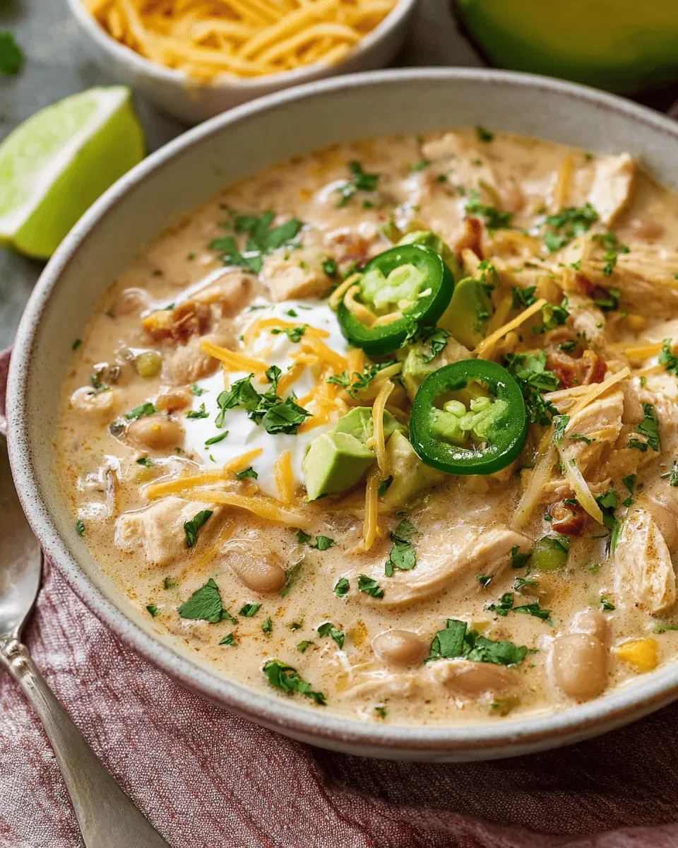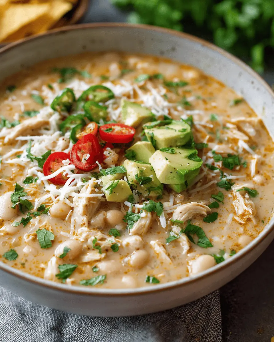 If you’re looking to whip up a vegetarian version of the best white chicken chili, you can easily substitute the chicken with hearty ingredients like chickpeas or tempeh. Use vegetable broth instead of chicken broth, and add more beans like pinto or navy beans for added protein. For creaminess, boost the Neufchatel cheese with some coconut cream or cashew cream, making it rich and delicious while keeping it entirely plant-based.
